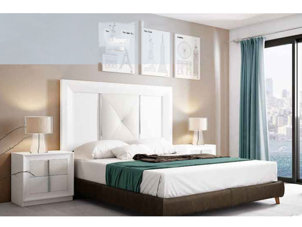 Incluye cabecero tapizado y plafón + 2 mesitas.
